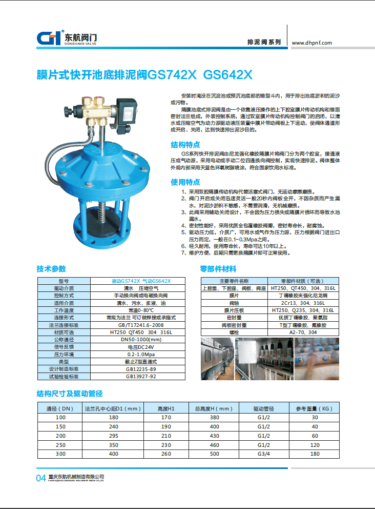 膜片式池底排泥閥 GS742X
